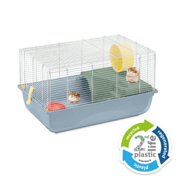 אבזור כלול: הכלוב מגיע עם קומת גלריה (מדף), סולם, בית מסתור, גלגל ריצה שקט, קערת אוכל ומתקן שתייה.